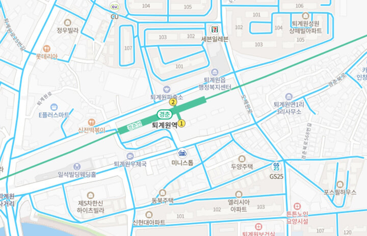 거리뷰가 필요한 하늘색 거리를 마우스 왼쪽 버튼으로 클릭해주세요.