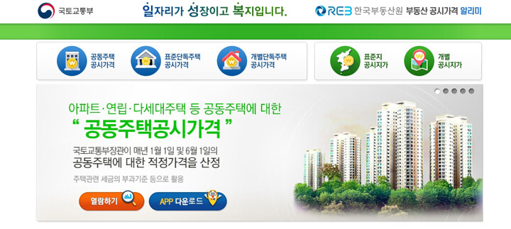 부동산 공시가격은 '한국부동산원 앱'에서도 확인하실 수 있습니다. 공시가격, 시세, 실거래가. 나에게 맞는 매물찾기, 아파트 관리비 정보 등 25종의 국민 맞춤형 정보를 제공하고 있습니다.