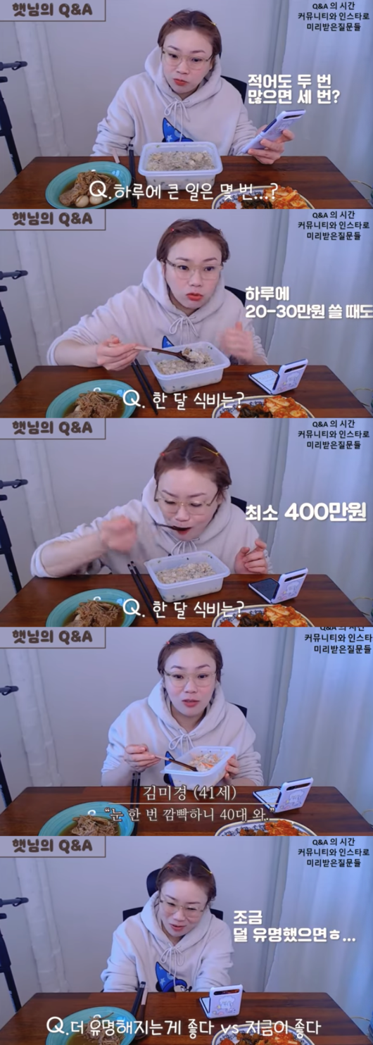 입짧은 햇님은 “요즘에 많이 썼다. 하루에 2~30만 원 써서 한 달에 400만 원은 나오는 것 같다.
