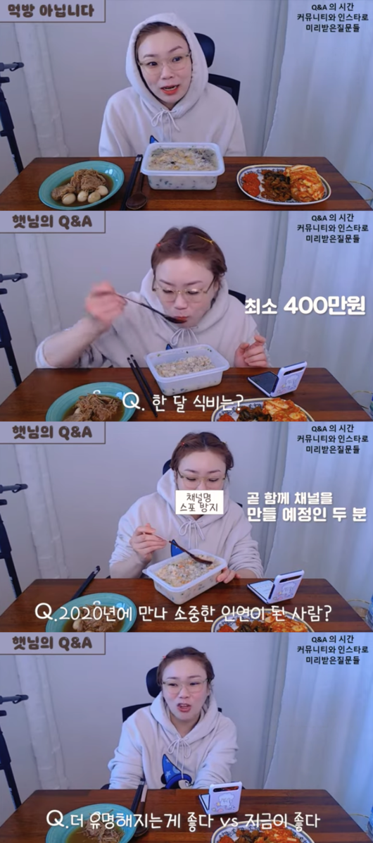 먹방 유튜버 입짧은 햇님이 자신의 소소한 이야기를 팬들과 공유했습니다.
